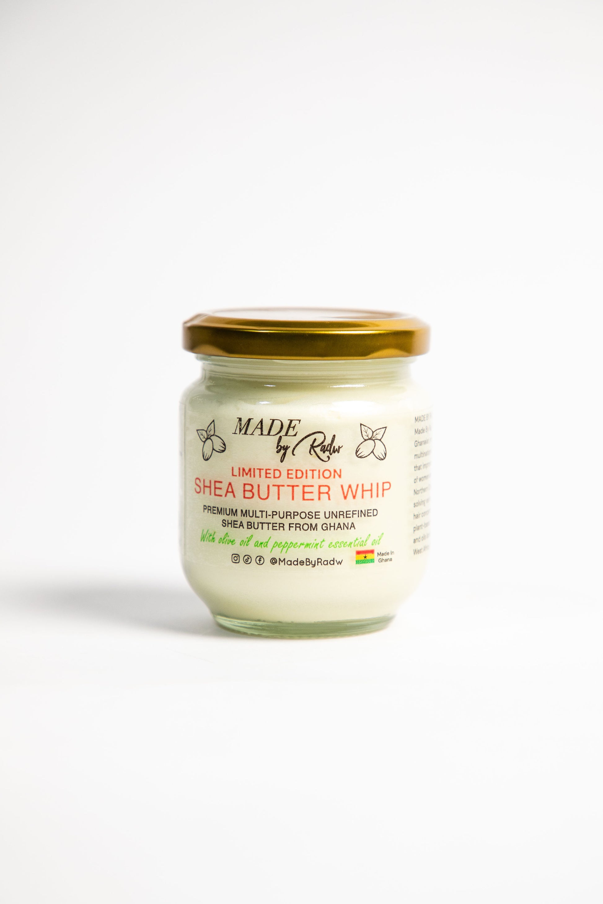 Your ultimate self care experience comes to life with our Peppermint Shea Butter Whip, a luxuriously smooth blend of 100% unrefined shea butter and olive oil for deep hydration and nourishment. Whipped to perfection, this lightweight formula melts effortlessly into your skin, leaving it soft, supple, and glowing - without a greasy feel.